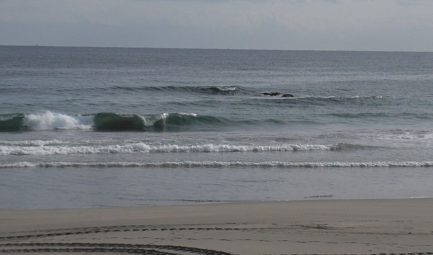 波の小さな日が続くと、上がった砂が動かないので、今の砂浜はかなり広いです。