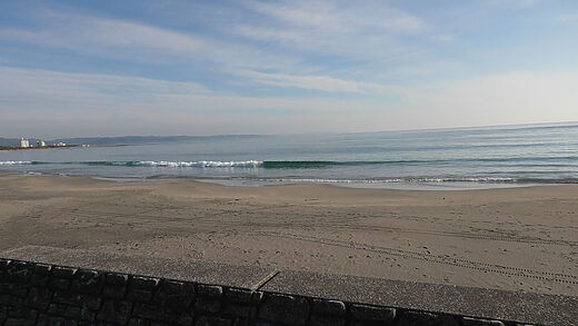 2月6日(金)/晴れ/西オフ弱目/フラット〜スネ/インサイド寄りのショアーブレークオンリー、ロングでテイクオフやっと・・・。