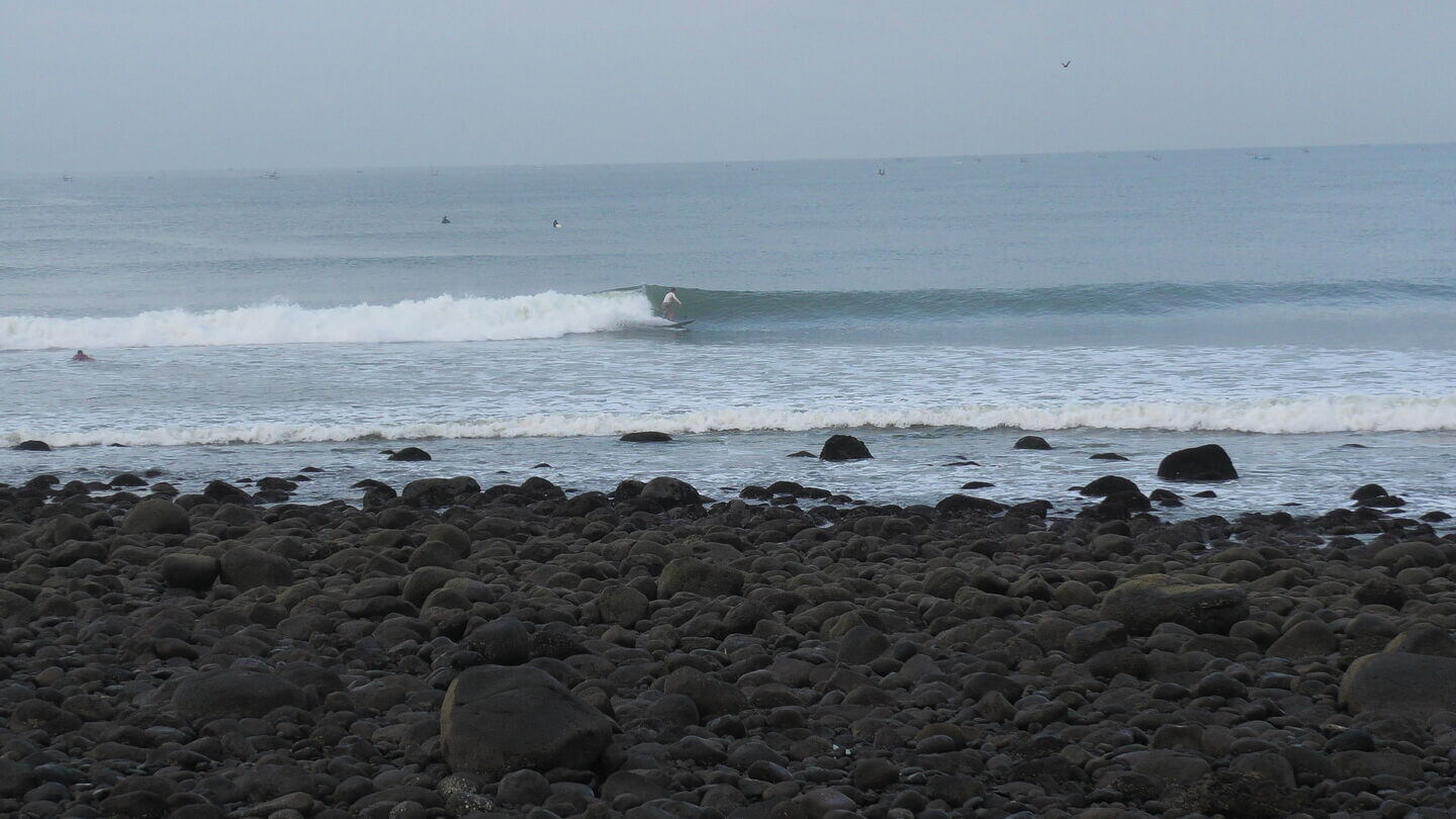 (ウネリが厚くて、ショートでは若者やローカルしか乗れない)