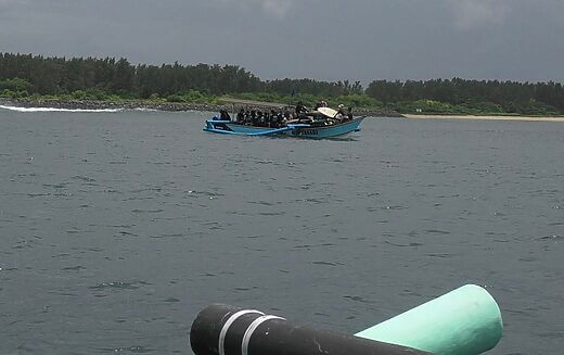 スクールの団体さんを、乗せたカヌーが行き交う海域。