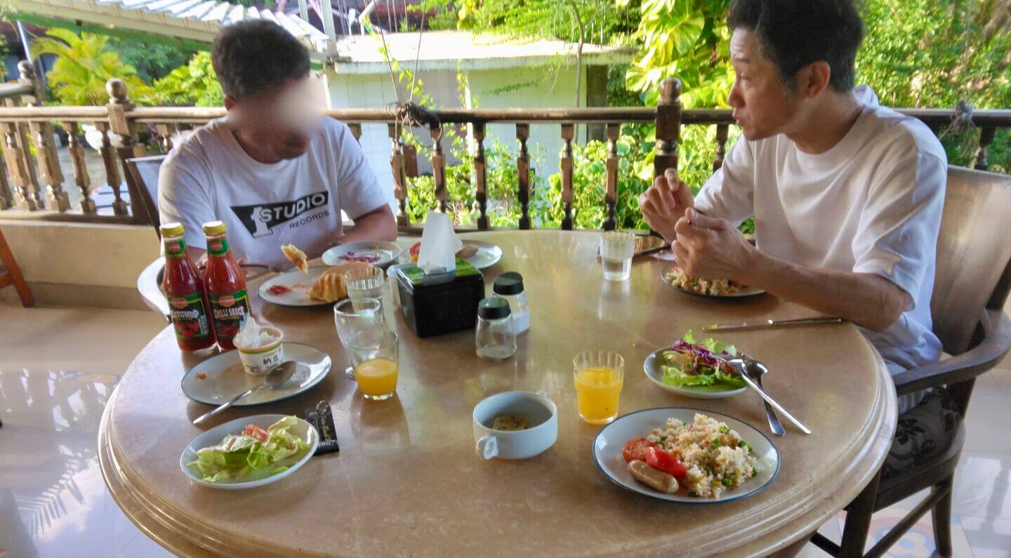 朝食タイムには「持ち前の明るさ」で、すっかり打ち解けていました😁