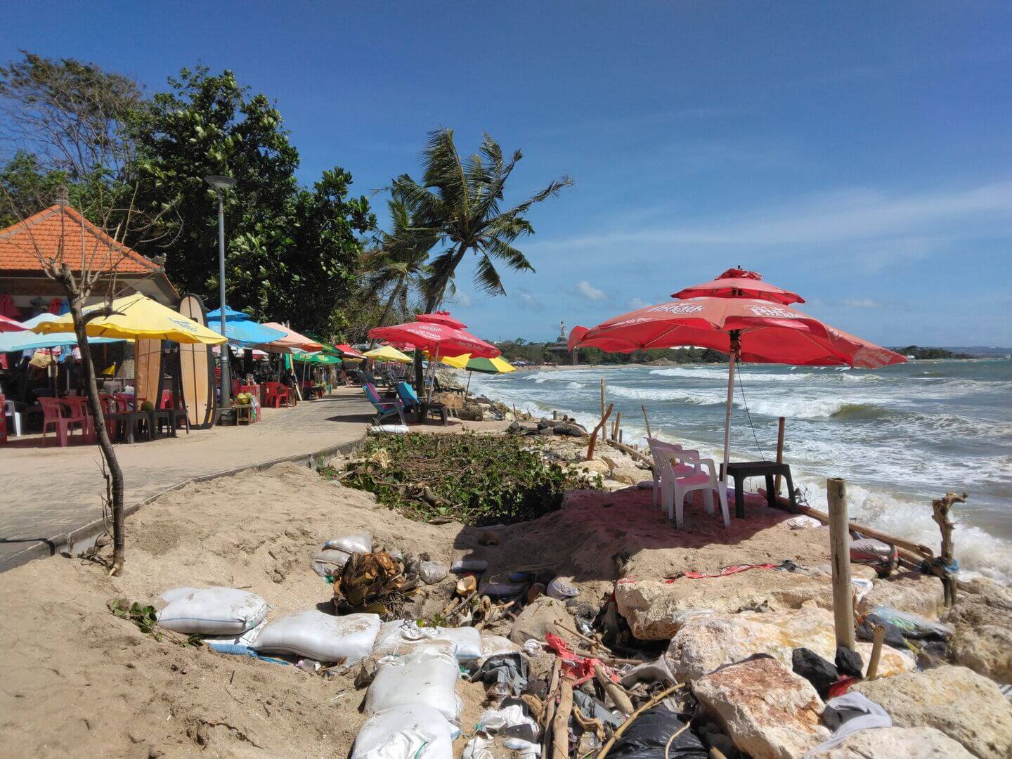 ビーチが侵食されてしまい、砂浜が無くなったクタビーチは