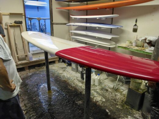 まずは稲村ヶ崎の「KOZO SURFBOARDS」で上田パイセンと