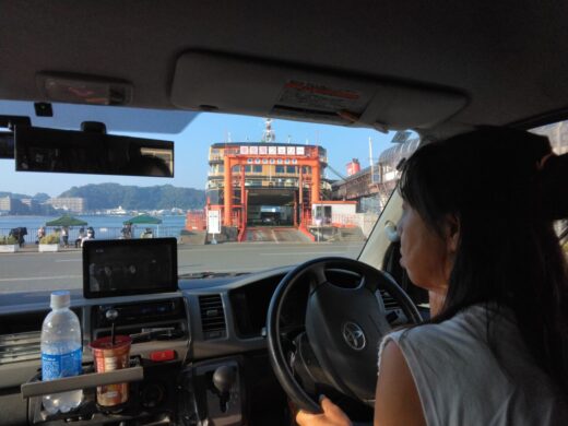 ならばサーフィン道具も一式積み込み、少しでも旅気分を演出する為に、あえてフェリーで。